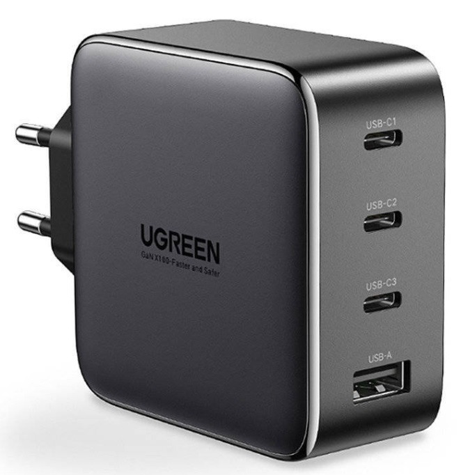 UGREEN GaN Quick Charger USB-A 3.0 + 3*Type-C 100W CD226, Black