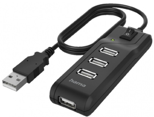 USB Hub, 4 Ports, USB 2.0, 480 Mbit/s, On/Off Switch