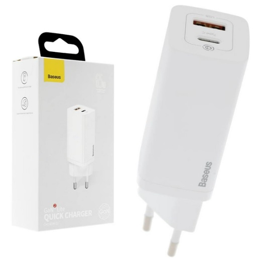 Universal Home Charger Baseus GaN2 Lite, 2xUSB (U + C), 65W, 5V/3A, White CCGAN2L-B02