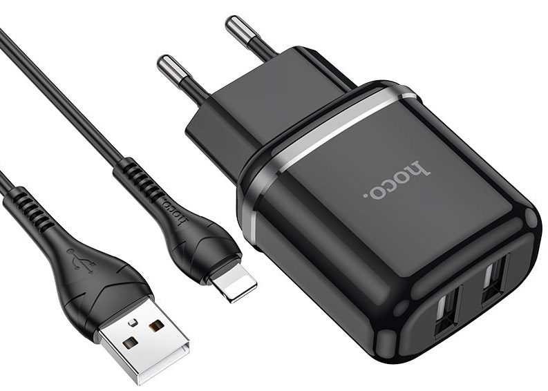 HOCO N4 Aspiring dual port charger set for Lightning Black HOCO N4 Aspiring dual port charger set for Lightning, Black