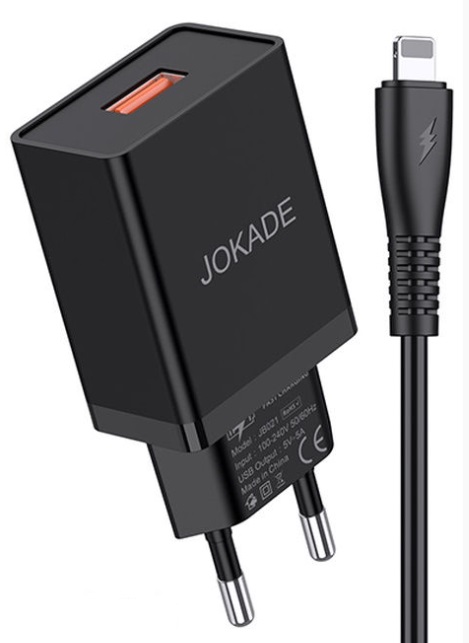Jokade Wall Charger with Cable USB to Lightning Single Port 5A JB022, Black