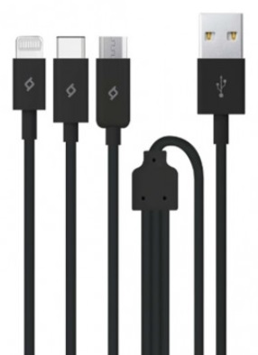 ttec Cable Trio USB to Type-C, Lightning, Micro-USB 2.1A (1.2m), Black .
