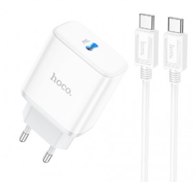 USB Charger HOCO C104A Stage Single port, 1 x USB-C, USB-C: 20W, up to PD20W / QC3.0, White