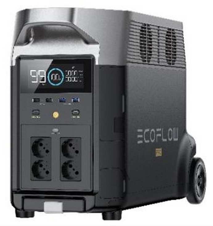 EcoFlow DELTA PRO Portable Power Station, Capacity: 3600Wh, X-Boost Output 4500W, AC Output: 3600W total, Number outlets 15 (6 AC Outlets, 2 USB-A Fast Charge, 2 USB-A, 2 USB-C), Mobile App, Bluetooth, WiFi, Net Weight: 45kg, Dimension: 63.5 x 28.4 x 42cm