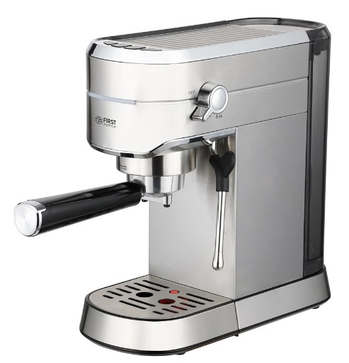 Кофемашина FIRST 005476-3 Тип: рожковая Используемый кофе: молотый Мощность: 1450 Вт Объем для воды/кофейника: 1 л Приготовление двух чашек: да Съемный лоток для сбора капель: есть Особенности: Подогрев чашек Габариты: 34x17x37.5 см Вес: 4.6 г