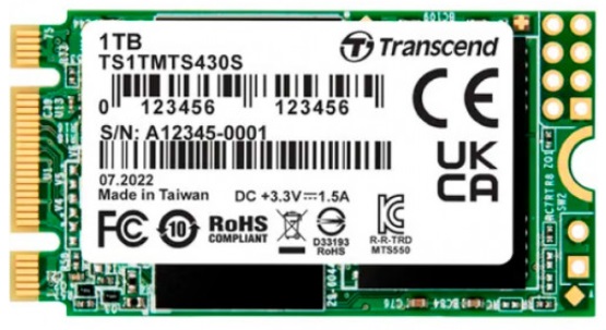 .M.2 SATA SSD 1.0TB Transcend MTS430S [42mm, R/W:560/520MB/s, 85K/85K IOPS, SM2258, 560TBW]