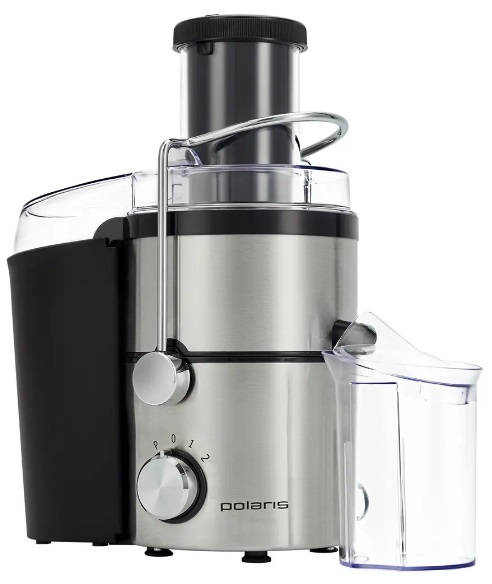 "Juicer Extractor Polaris PEA0934A , 900W power output, juice collection container 0.4l removable pulp container 1.25l, feeding tube (65 mm), 2 speeds, stainless steel"