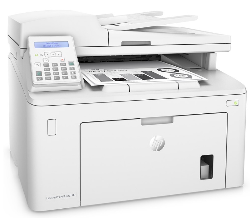 HP LaserJet Pro MFP M227fdn Print/Copy/Scan/FAX 28ppm, 256MB, up to 30000 monthly, 2 line screen, 1200dpi, Duplex, 35 sheets ADF, Hi-Speed USB 2.0, Fast Ethernet 10/100Base-TX
