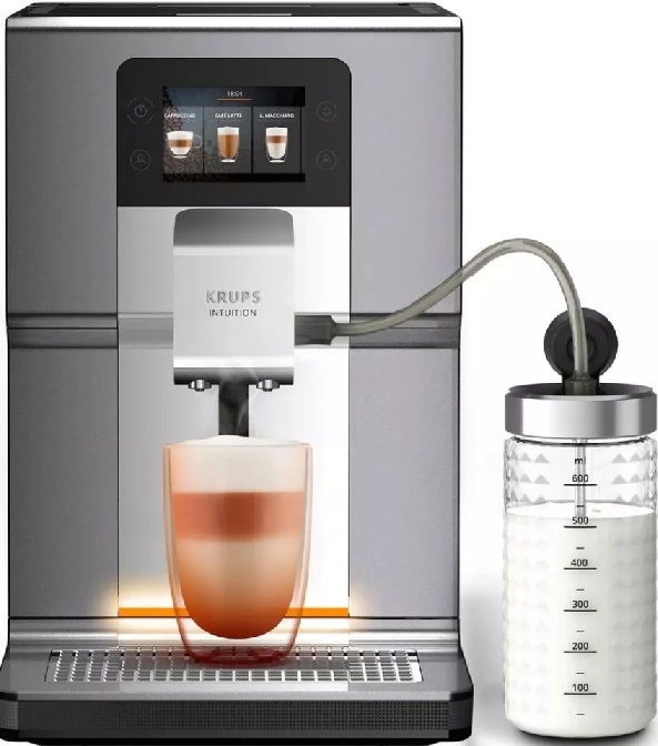 Coffee Machine Krups EA875E10 Putere: 1450 W Tip de cafea folosita: Cafea boabe Tensiunea pompei : 15 bar Volumul rezervorului de apa : 3 L Capacitatea rezervorului pentru boabe : 250 g Pregatirea simultana a doua cani: Да Afi?aj: Да Тип: автоматическая Используемый кофе в зернах Объем резервуара для воды 2.4 л Объем резервуара для зерен 250 г Материал жерновов сталь Количество степеней помола 5 Мощность 1450 Вт Максимальное давление 15 бар Приготовление 2 чашек да Капучинатор автоматический Емкость кувшина для молока 0.6 л Американо да Капучино да Эспрессо да Эспрессо макиато да Ристретто да Латте да Латте макиато да Флэт уайт да Горячее молоко да Кипяток да Лунго да Функция мой кофе да Регулировка крепости кофе да Количество уровней крепости 3 Регулировка температуры кофе да Регулировка порции горячей воды да Таймер да Автоотключение да Съемный лоток для сбора капель да Автоматическая декальцинация да Цвет серебристый Материал корпуса пластик Габариты (ВxШxГ) 400x280x440 мм Вес 8.1 кг Дополнительно световые подсказки Производитель Krups
