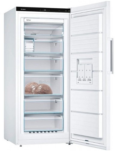 Морозильная камера BOSCH GSN51AWDV Энергоэффективность: A +++ Емкость: 290 литров Уровень шума: 38 дБ Высота: 161 см. Ширина: 70 см Глубина: 78 см