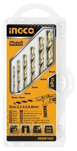 INGCO AKDB1065 Производитель INGCO Диаметр (mm) 2/3/4/5/6/8 Длина (mm) 49/61/75/86/93/117 Рабочая длина (mm) 30 - 85