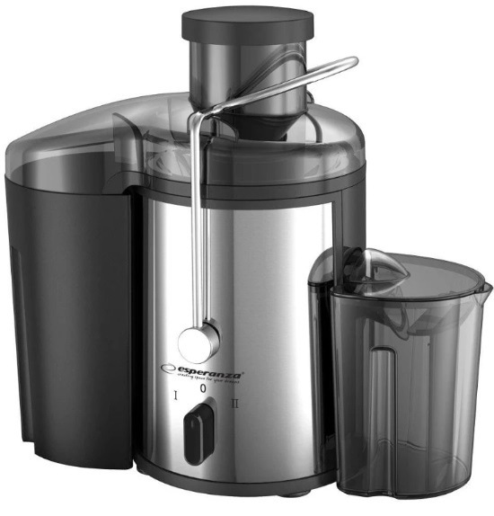 Storcator de fructe Esperanza Carrot EKJ002 Тип центробежная Мощность 500 Вт Количество скоростей 2 Диаметр загрузочного отверстия 6.5 см Объем резервуара для сока 1.5 л Объем резервуара для мякоти 0.45 л Материал корпуса пластик , металл Прорезиненные ножки да Длина шнура 1.1 м Цвет чёрный , нерж.сталь Производитель Esperanza