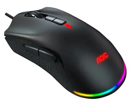 AOC GM530B Gaming Mouse, Black, 400–16000 DPI, Pixart PMW3389 sensor, RGB Logo, 7 x button mouse, Comfortable symmetric design, Kailh switches, Light ring provides dynamic RGB effects, USB, AOC G-Menu, 146g