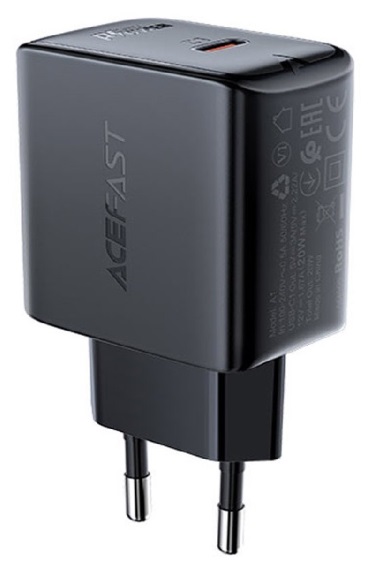 USB Charger ACEFAST A1, Single port, USB-C, PD3.0 20W, Total output: 20W, QC3.0, Black Один выход USB-C PD3.0 мощностью 20 Вт. Вилка европейского стандарта. Поддерживает большинство протоколов быстрой зарядки.