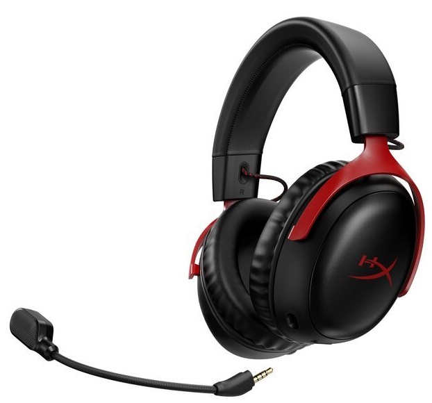 Wireless headset HyperX Cloud III Wireless, Black/Red, Frequency response: 10Hz–21kHz, Battery life up to 120h, Driver: Dynamic, 53mm with Neodymium magnets, Ultra-Clear Microphone with LED Mute Indicator, DTS Headphone:X Spatial Audio, USB 2.4GHz Wirele