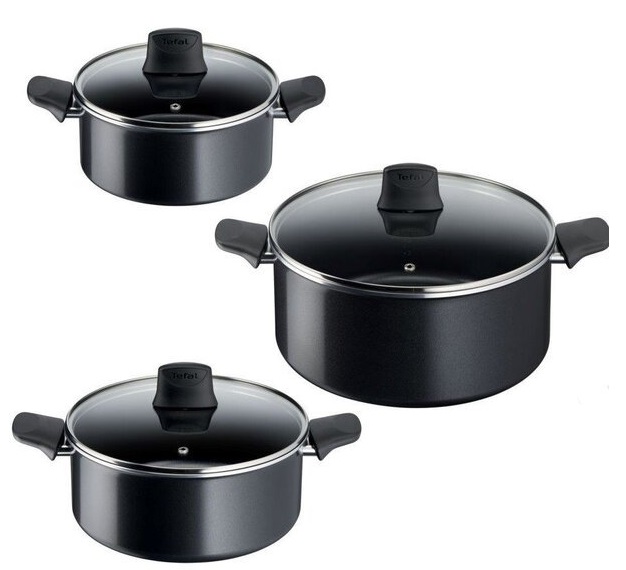 Pot Set Tefal C2789053 Тип набора Набор кастрюль Совместимость с плитами Все типы плит Количество предметов 6 Количество кастрюль 3 Материал крышки Стекло Материал посуды Алюминий Материал ручек Бакелит Объём кастрюль, л 2,7, 4,5, 7,5 Диаметр кастрюль, см 20, 24, 28