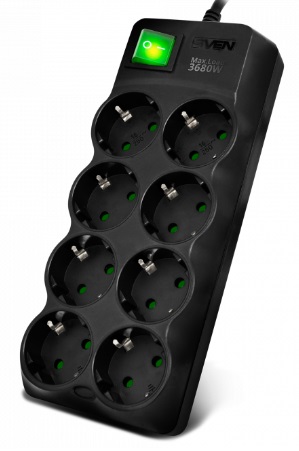 Surge Protector SVEN SF-08E-16, 8 Sockets, Children protection, 3.0m, ABS plastic, Black