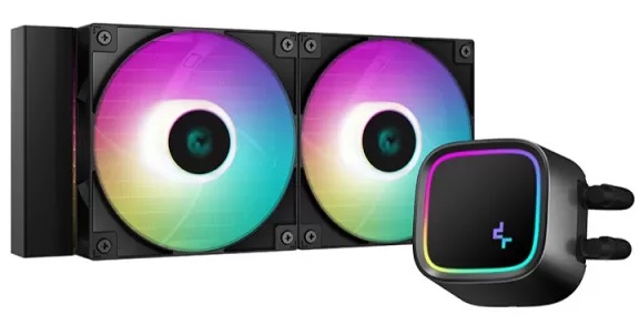 DEEPCOOL Liquid Cooler LE520, 240mm radiator, Anti-Leak Technology, Socket LGA1700/1200/1151/1150/1155 & AM5/AM4, up to 220W, 2x120mm ARGB PWM fans, Led mirror cap, fans: 500~2250rpm, 17.6~32.9dBA, 85.85CFM, 4pin PWM, pump: 2550rpm, 17.8dBA, Hydro Bea Тип: Жидкостное охлаждение Назначение: Для процессора Intel/AMD Тип сокета процессора: 1150/1151/1155/1200/1700/AM4/AM5 Уровень шума: 32.9 дБ Частота вращения: 500 - 2250 rpm Коннектор питания: 4 pin Подсветка: Есть Цвет подсветки: RGB Диаметр вентилятора: 120 мм