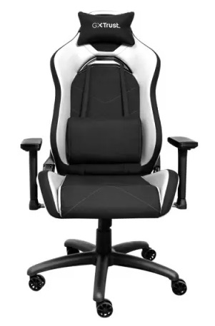 Trust Gaming Chair GXT 714W Ruya - Black/White, PU leather, 3D armrests, Class 4 gas lift, 90°-180° adjustable backrest, Strong and robust metal base frame, Including removable and adjustable lumbar and neck cushion, Durable double wheels, up to 195 cm, u
