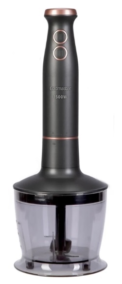 Blender stationar GoldMaster GM 7271AN Antracite 1500W Тип ручной Мощность 1500 Вт Турборежим да Крюки для теста да Венчики для взбивания да Погружной блендер да Измельчитель да Объем чаши 0.5 л Материал чаши пластик Материал корпуса пластик Цвет серый Особенности и функции мерный стакан 0.8 л Производитель GoldMaster