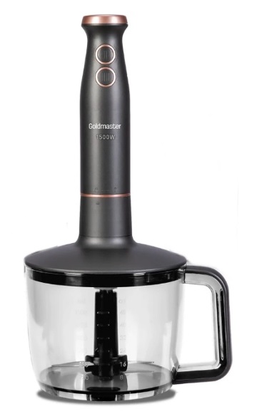 Blender stationar GoldMaster GM 7273AN Antracite 1500W Тип погружной Мощность 1500 Вт Измельчитель да Объем чаши 1.5 л Материал чаши пластик Турборежим да Венчик для взбивания да Насадка для пюре да Мерный стаканчик да Объем мерного стакана 0.8 л Материал корпуса пластик Материал погружной части нержавеющая сталь Цвет серый Производитель GoldMaster