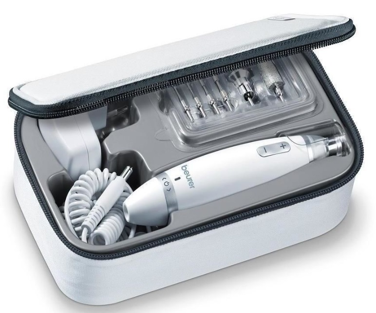 Manicure set Beurer MP62 Тип набор для маникюра / педикюра Количество скоростей 1 Количество насадок, шт. 10 Материал корпуса пластик Питание от сети 220 В да Мощность, Вт 8 Подсветка да Доп. особенности кейс для хранения и переноски Вес, г 550 Производитель Beurer
