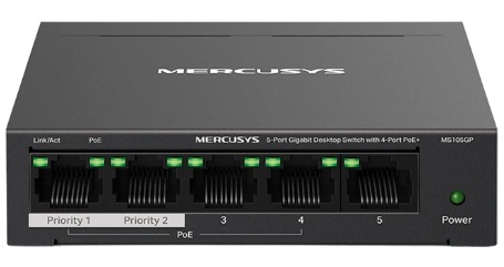 .5-port Gigabit Switch MERCUSYS MS105GP, with 4-Port PoE, steel case, 65W Budget