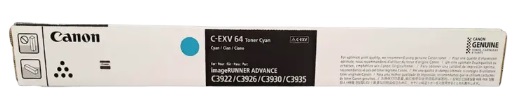Toner Canon C-EXV64 Cyan, (appr. 25,500 pages 5%) for iR ADV DX C39xx SeriesToner Canon C-EXV64 Cyan, (appr. 25,500 pages 5%) for iR ADV DX C39xx Series