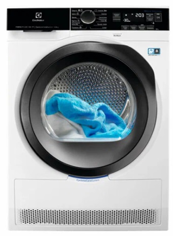 Dryer Electrolux EW9H188SC Цвет товара белый/черный Сторона открывания двери справа Тип загрузки фронтальная Максимальная загрузка 8 кг Установка в колонну, отдельно стоящая Тип сушки конденсационная с тепловым насосом